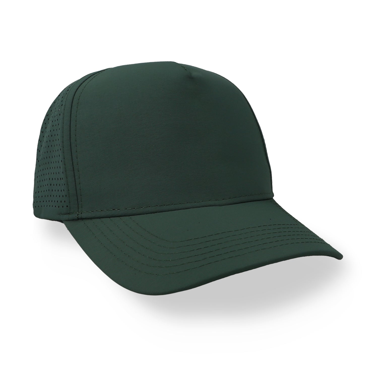 Gorra SC Edge de 5 paneles en color verde, con diseño moderno y estructura ligera. Ideal para un look urbano, fresco y funcional.